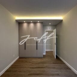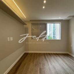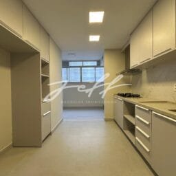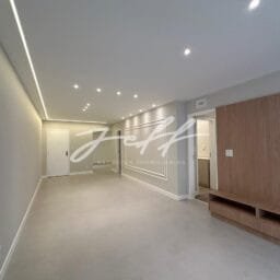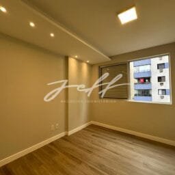 São 135m2 distribuídos em sala para dois ambientes, 3 quartos, 1 suítes com closet, cozinha planejada, dependência de empregada, área de serviço e uma vaga demarcada.