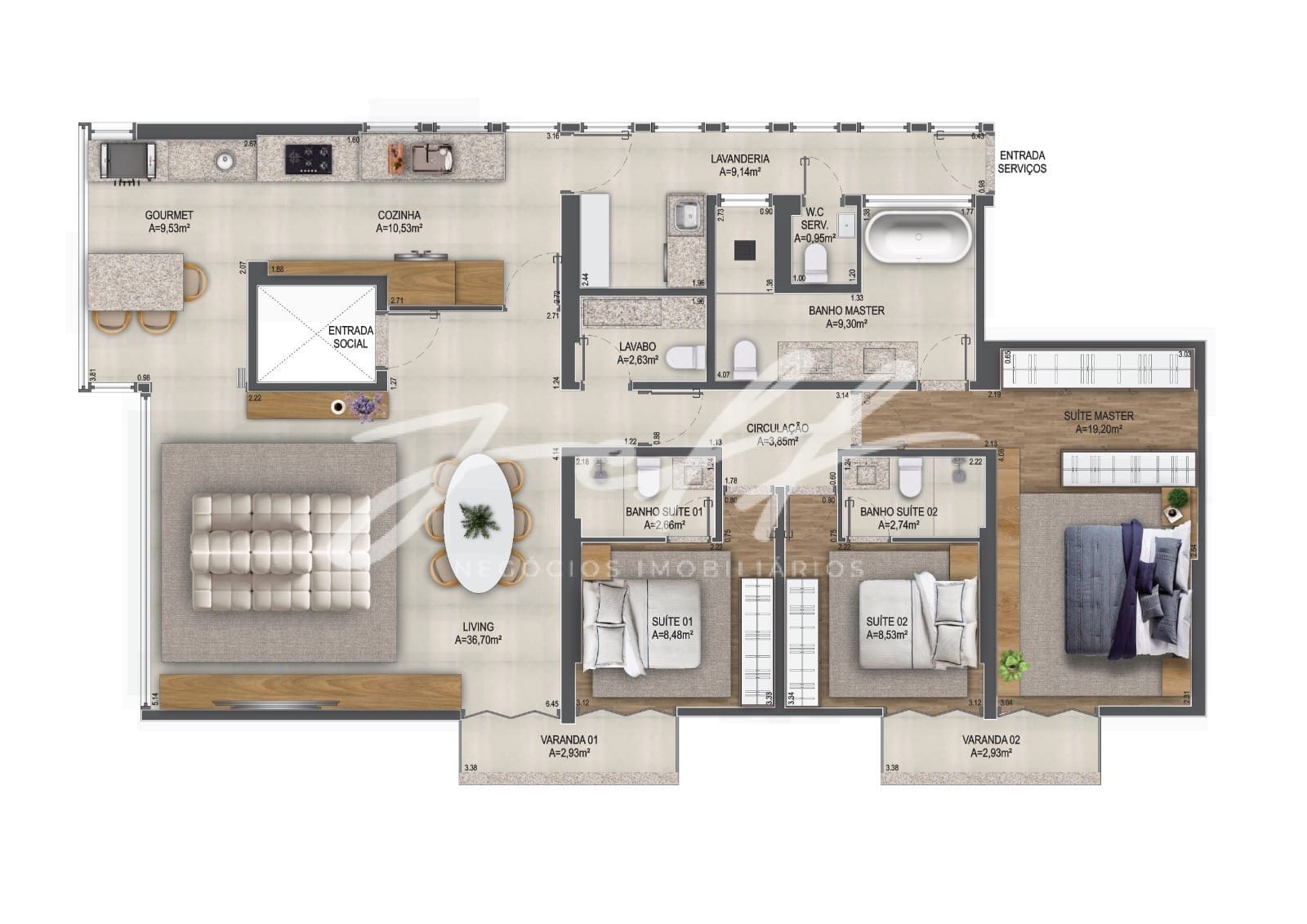 São 160m2 – 3 dormitórios sendo duas suítes – 1 suíte master – Sala – Cozinha planejada – 5 banheiros – Lavabo – 1 vaga.