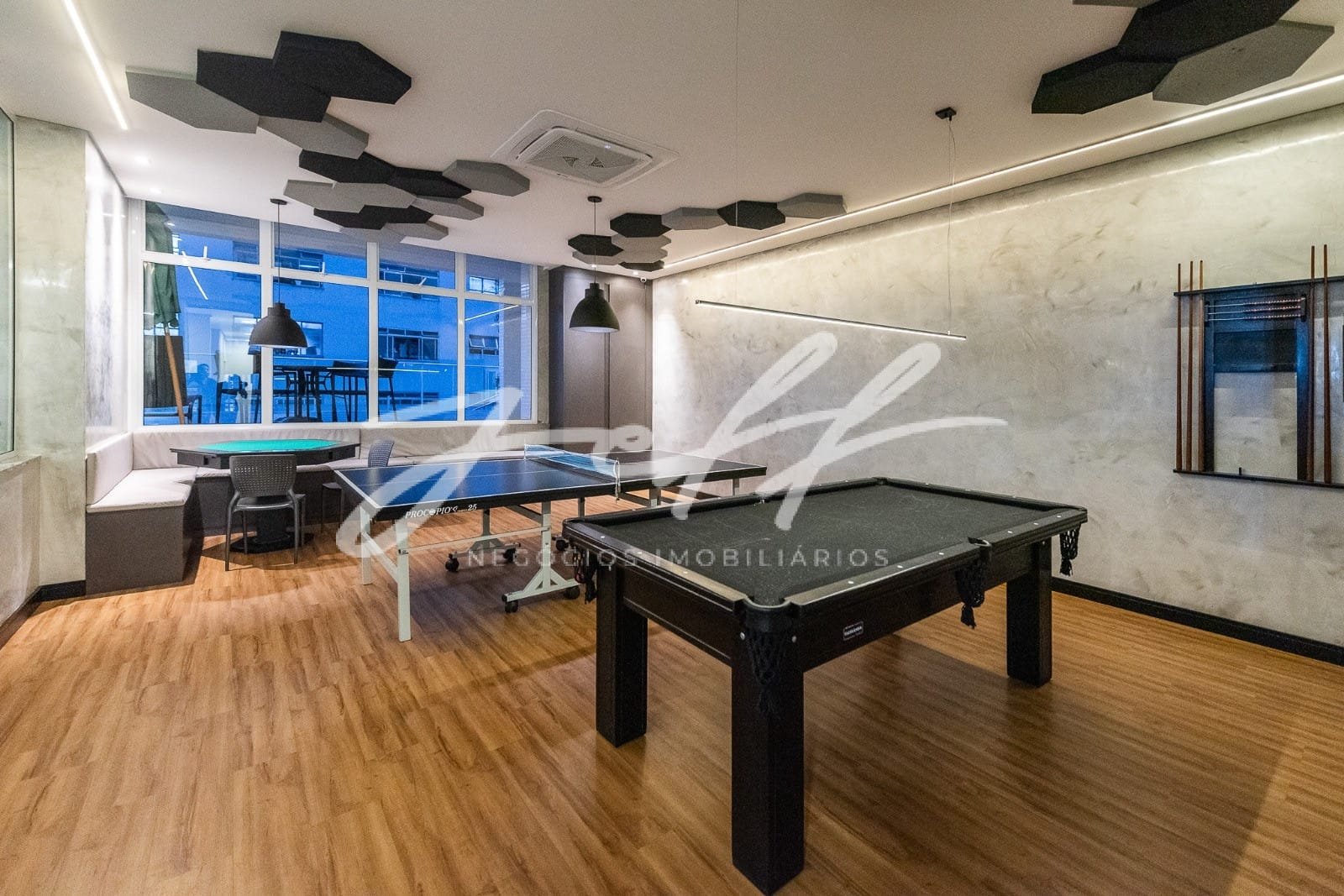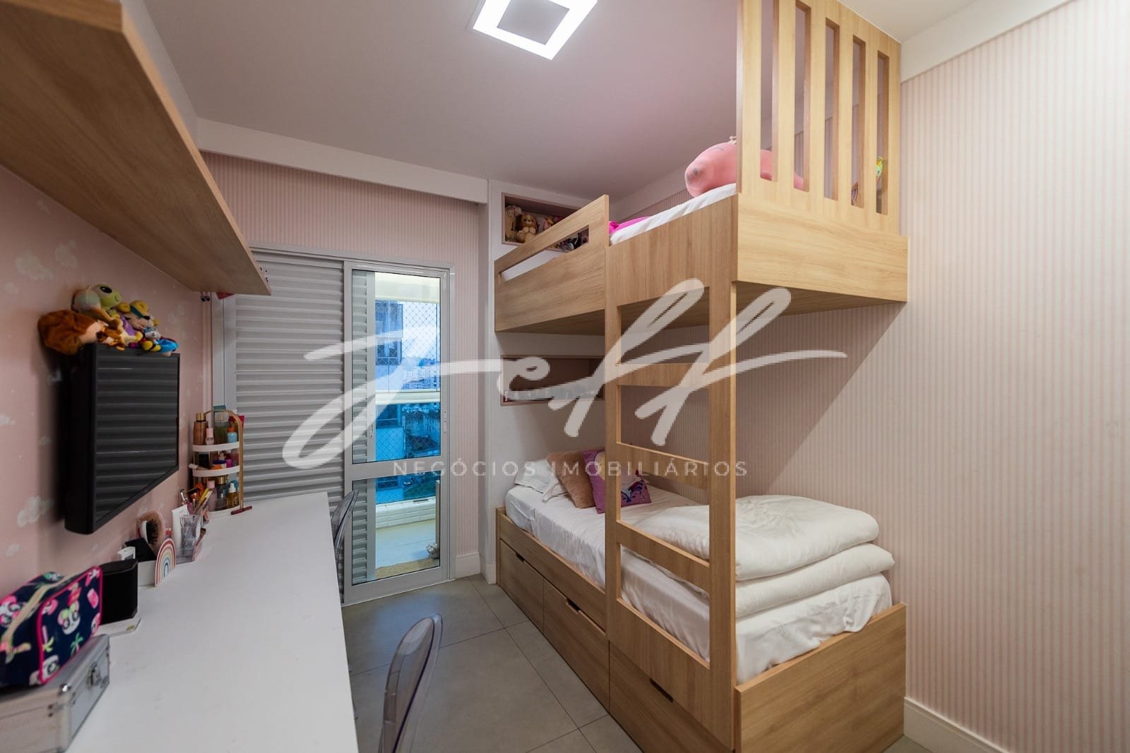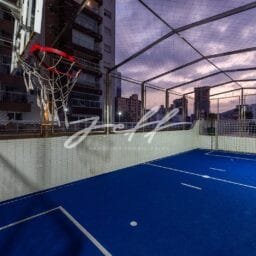 Lazer com piscina, academia, brinquedoteca, quadra esportiva, salão de jogos.