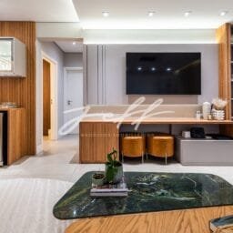 Finamente decorado e mobiliado, a planta quadrada otimizando o espaço, garantindo maior conforto, controle de água individual, com opção de aquecimento a gás ou elétrico, é uma solução prática para os moradores.